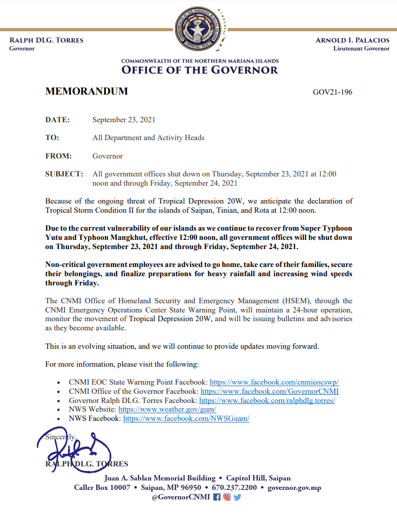 The Office of the NMI BON will be CLOSED on Thursday, September 23rd, 2021 from 12:00pm to Friday, September 24th, 2021, due to the tropical storm.